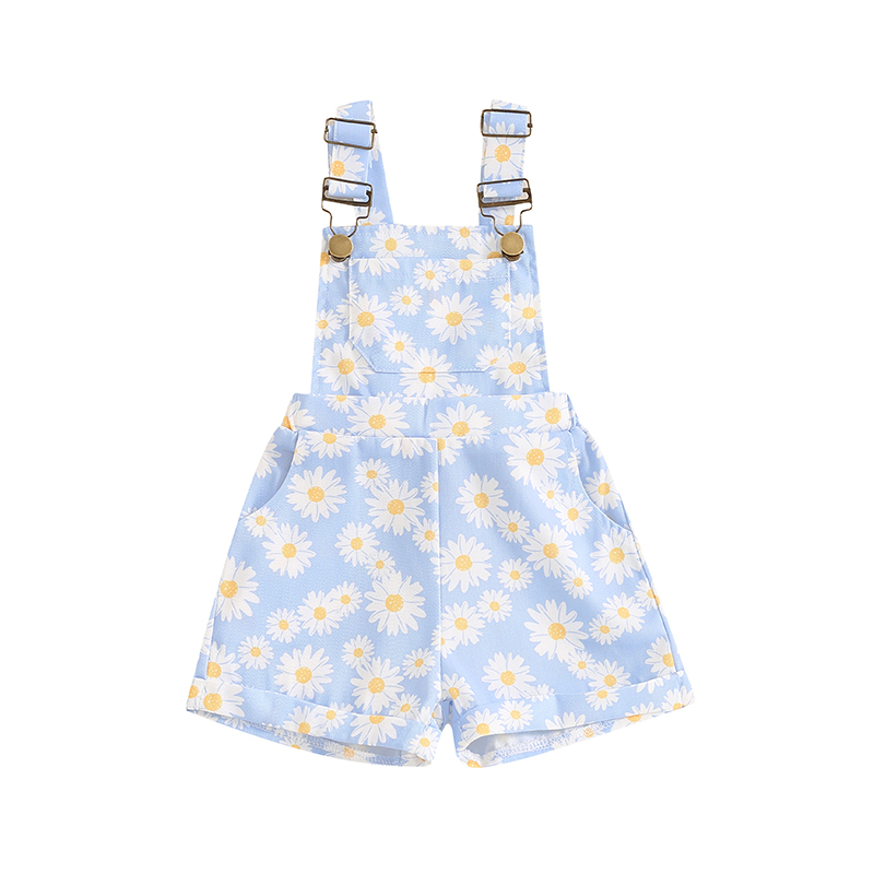 Baby Girl Daisy Print Summer Romper – Sleeveless Toddler Overall Shorts