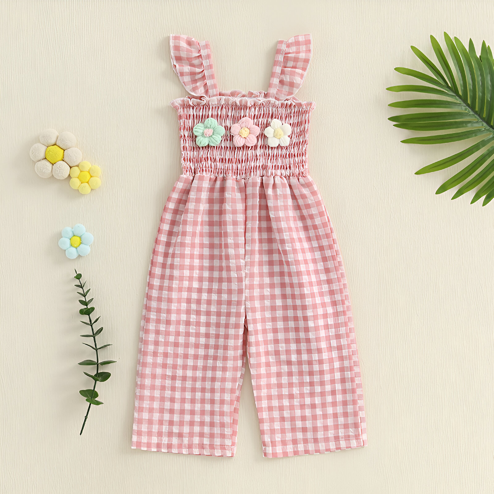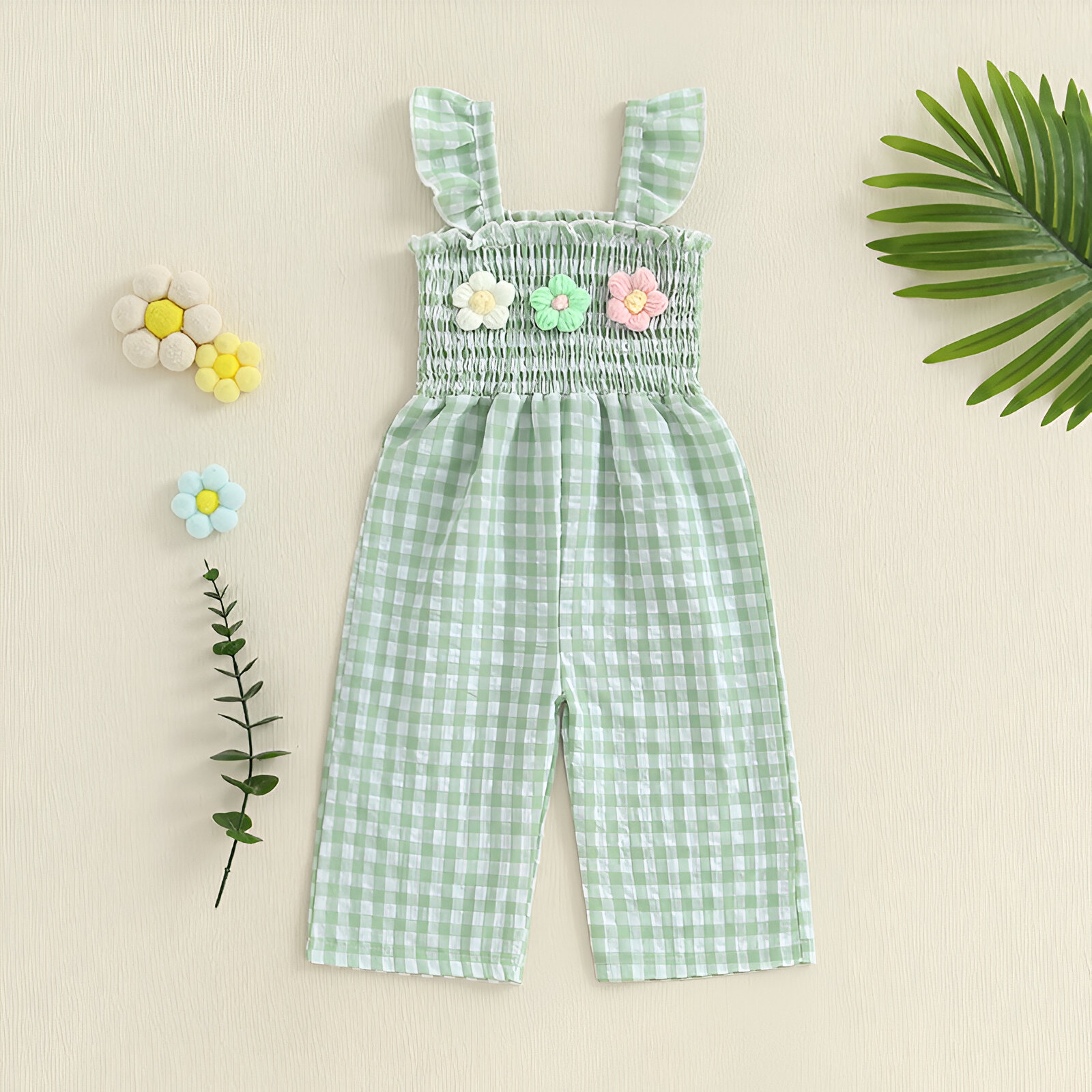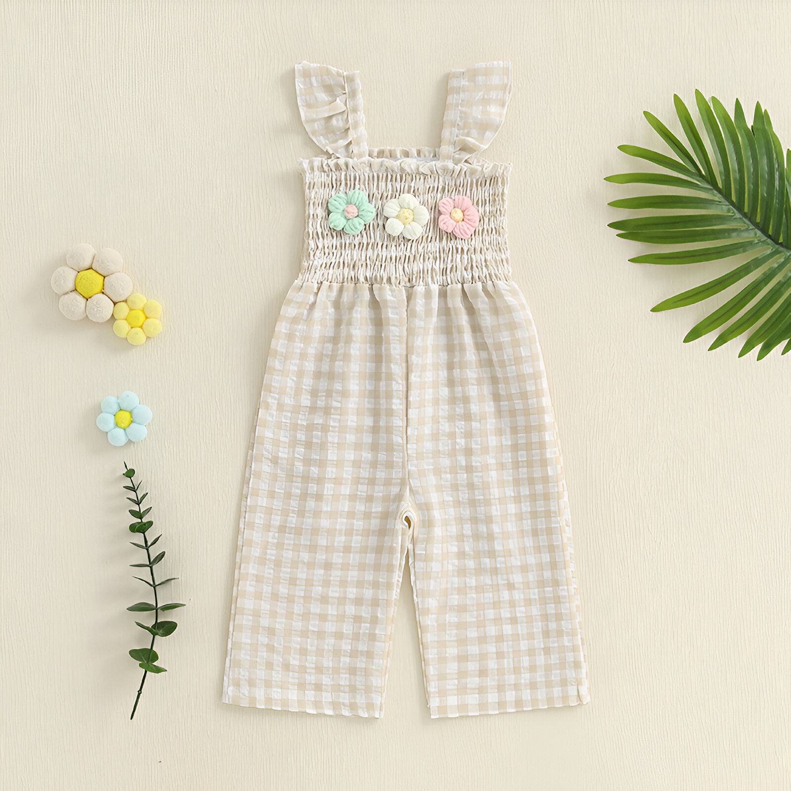 Baby Girl Summer Plaid Ruffle Romper with Suspender Pants