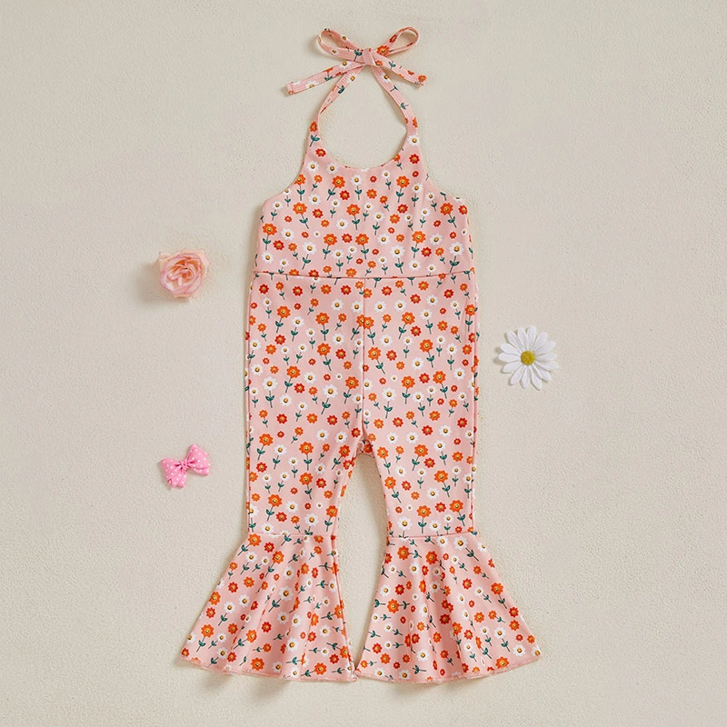 Toddler Girl Summer Floral Halter Jumpsuit – Sleeveless Open Back Romper
